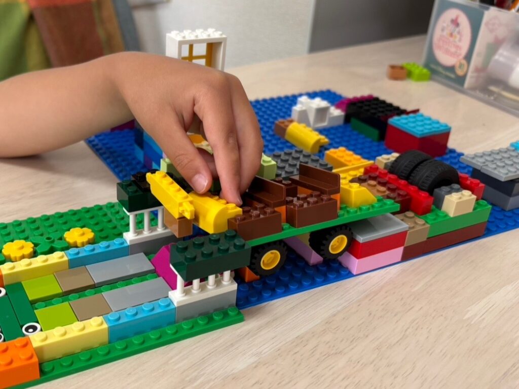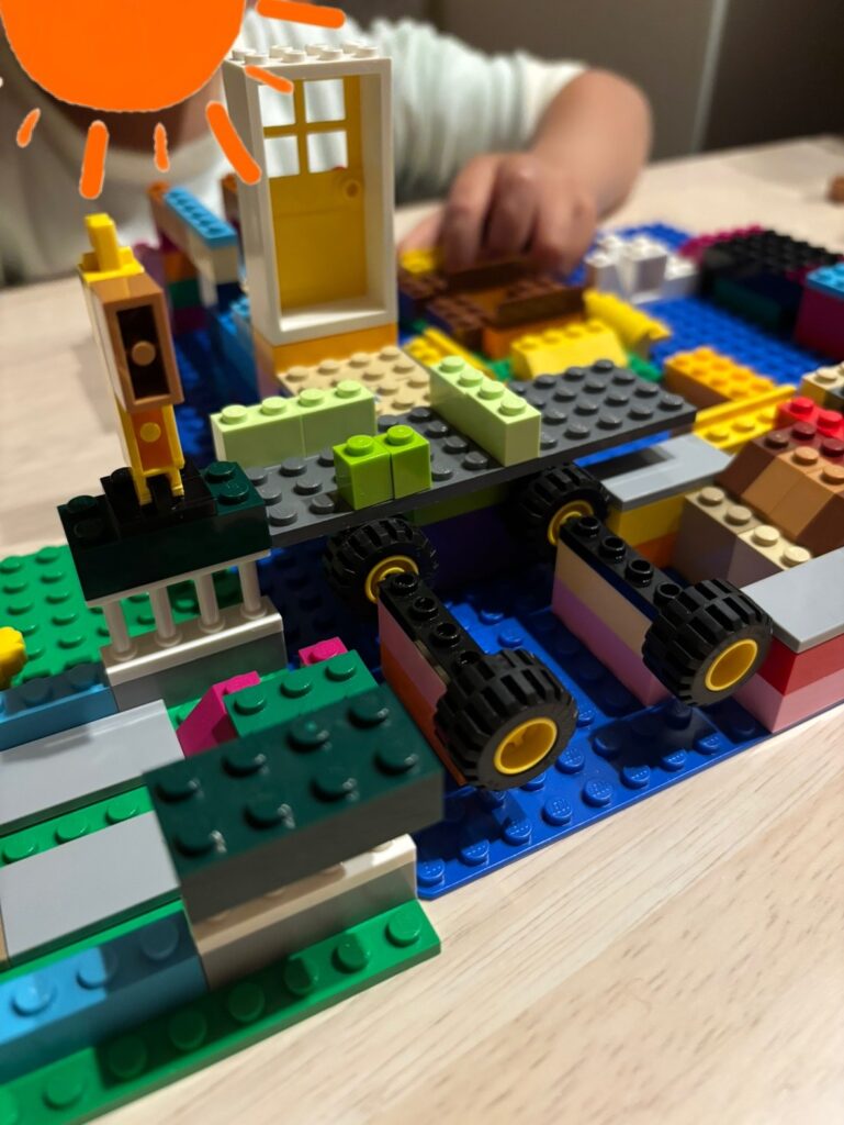 帰ってきてから、レゴでスプラッシュマウンテンを作っていました。