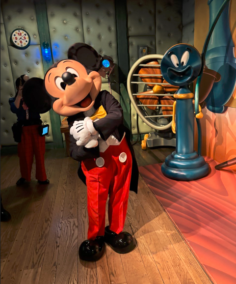 ミッキーが、ピーターパンをイメージしたポージングを提案してくれました!