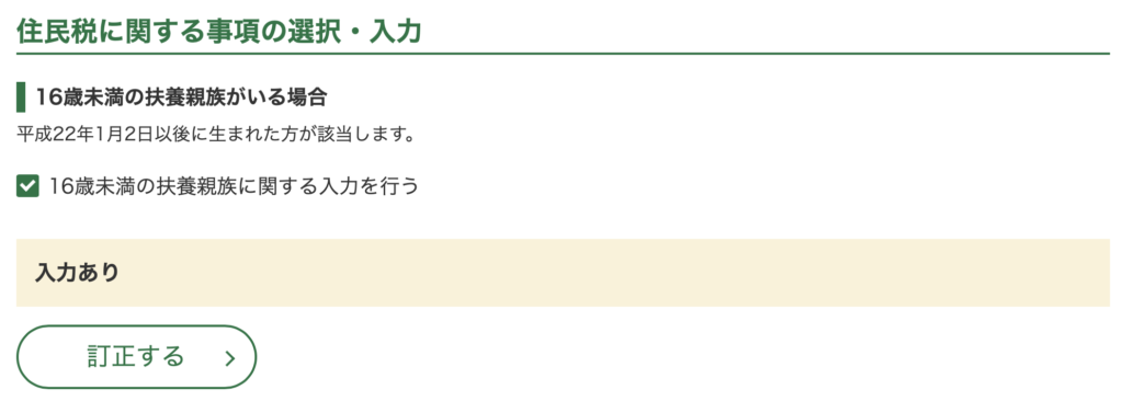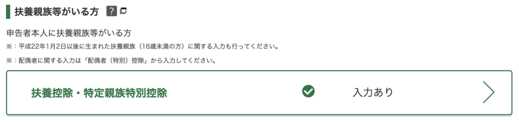 ↓16歳未満の子どもを扶養している場合、「入力あり」になっているか確認しましょう。