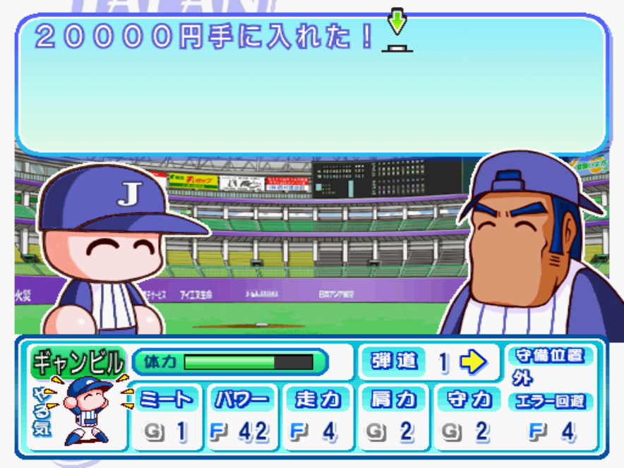 球青年で打撃勝負を行う。勝利するとお金GET。また、結果によって次のとおり特殊能力獲得。