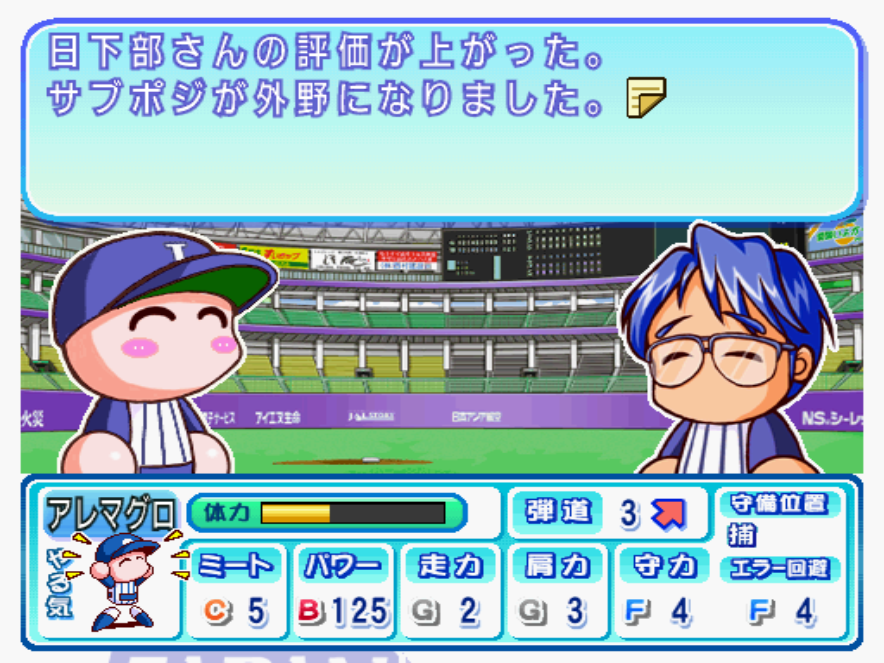 →サブポジション取得。私は守備練習を選択したときに発生した(日下部は守備練習にはいなかったと思う)。